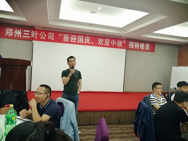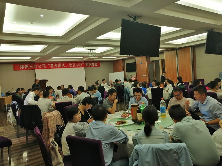 “月是故鄉(xiāng)明,今年分外圓”!2019年9月12日,恰逢雙節(jié)來(lái)臨之際,鄭州三葉公司在鄭州海天假日酒店舉行“喜迎國(guó)慶、歡度中秋”招待晚宴。在晚宴進(jìn)行過(guò)程中,各位員工爭(zhēng)先恐后踴躍發(fā)言,有的講述著自己與三葉公司的故事,有的描述著對(duì)未來(lái)的期待,還有的表達(dá)著自己對(duì)祖國(guó)70華誕的祝福……