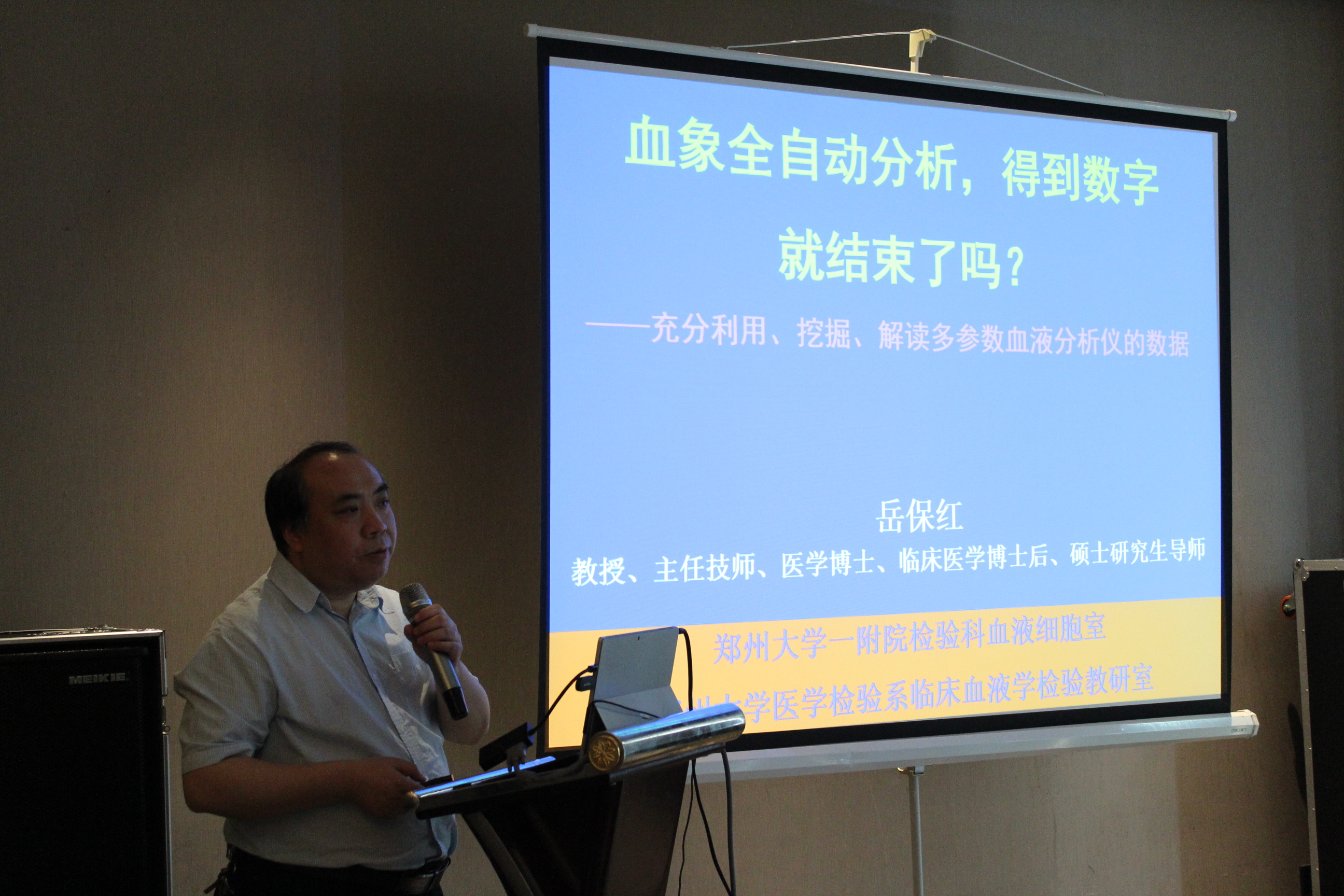 本次會(huì)議邀請(qǐng)到了鄭州大學(xué)第一附屬醫(yī)院的岳保紅教授,岳教授分享了《血象全自動(dòng)分析儀,得到數(shù)字就結(jié)束了?》課題,講課內(nèi)容從現(xiàn)代血常規(guī)分析進(jìn)展進(jìn)化史到全自動(dòng)儀器多參數(shù)的價(jià)值,到儀器分類原理、血象與骨髓象的關(guān)系,通用大量的案例生動(dòng)的講述了如何利用好全自動(dòng)的儀器的散點(diǎn)圖、儀器報(bào)警信息來(lái)挖掘和避免異常結(jié)果的漏檢,同時(shí)也強(qiáng)調(diào)鏡檢必須,才能避免漏檢。講課結(jié)束后參會(huì)老師也提出自己的疑問(wèn),岳老師也一一解答,講課得到了與會(huì)老師的熱烈掌聲。